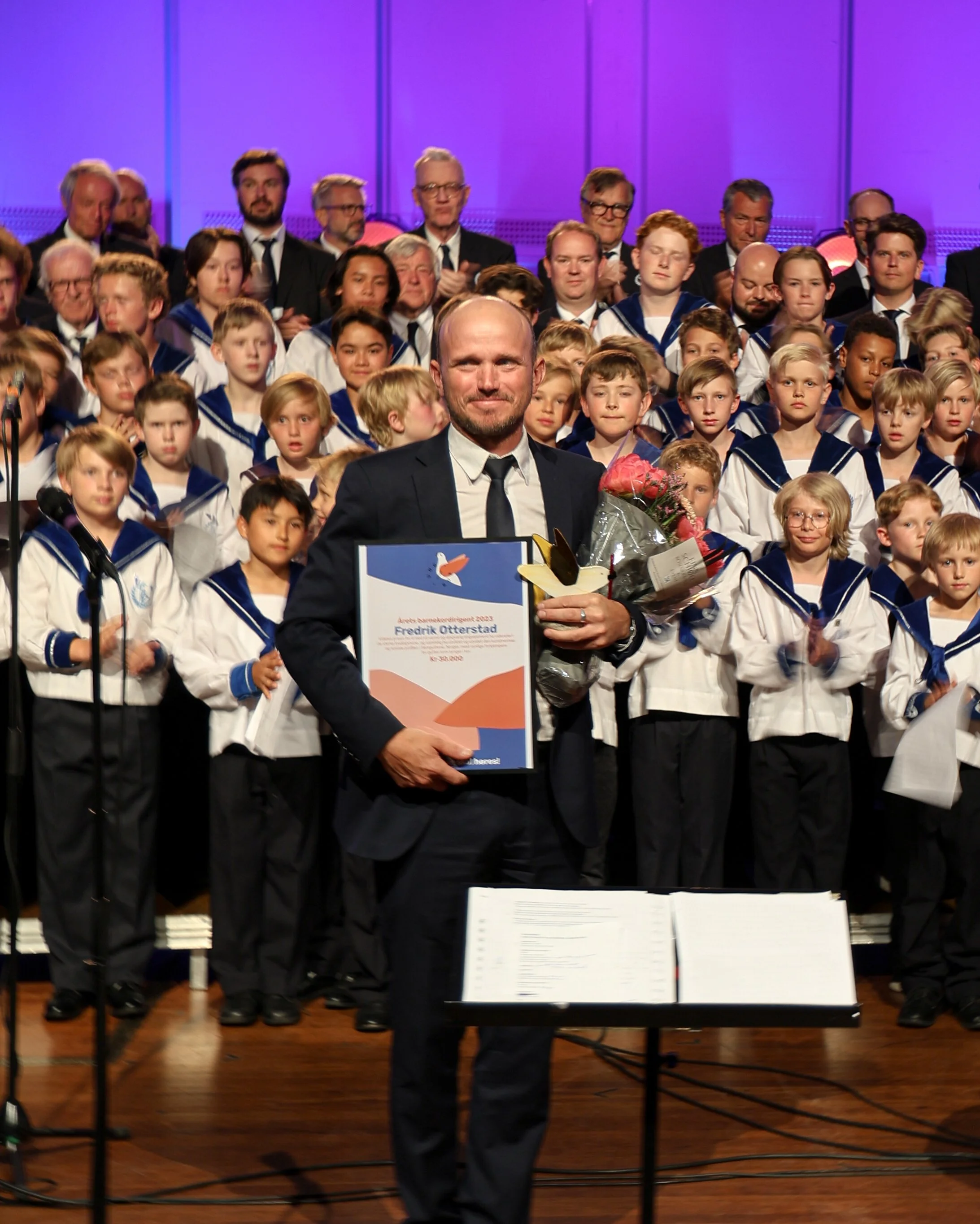 Fredrik Otterstad, dirigent for Sølvguttene, mottok prisen “Årets barnekordirigent” i 2023.