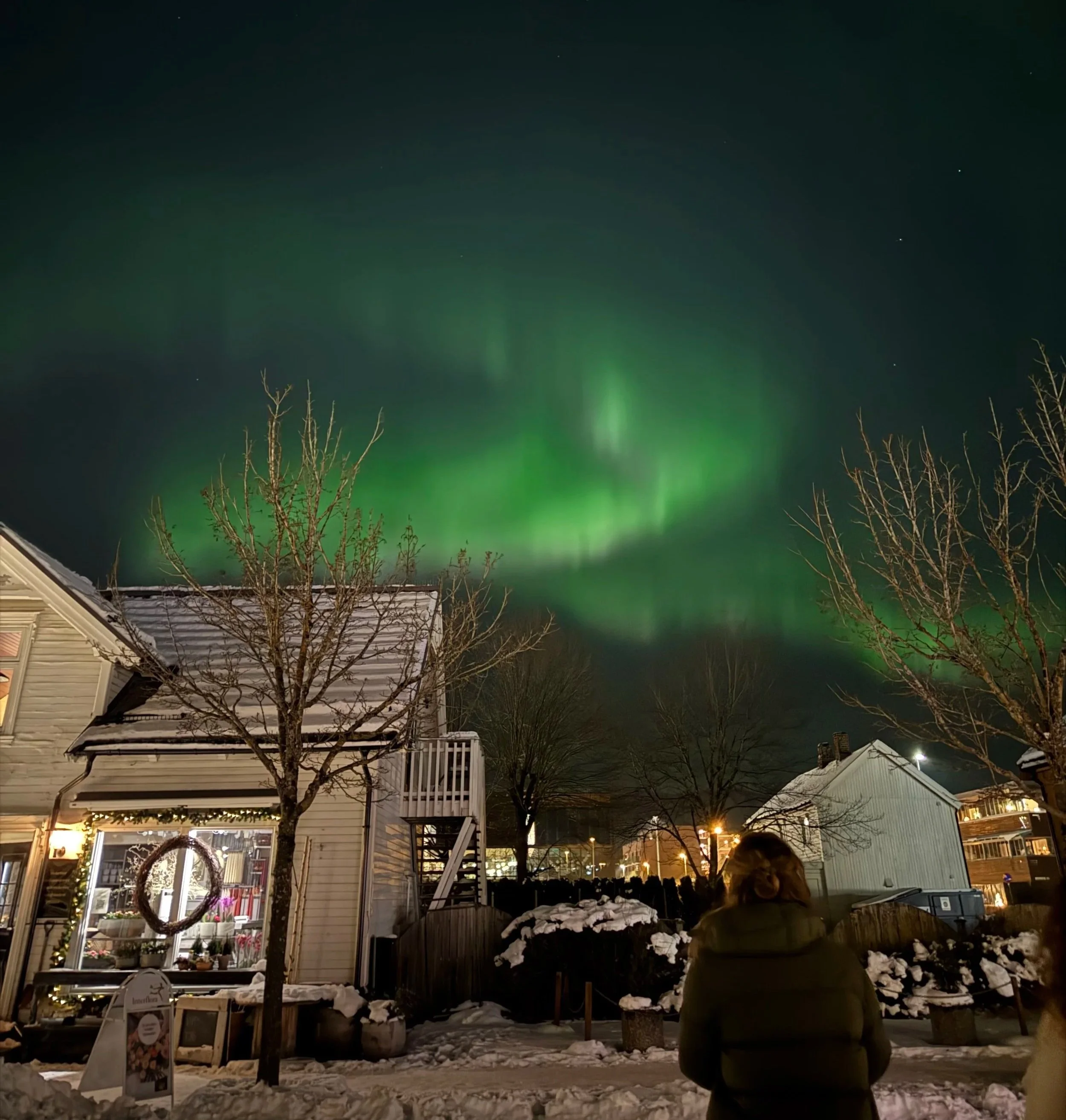 Nordlys over Stjørdal sentrum (Foto: Ung i Kor/Unn Thorsen)
